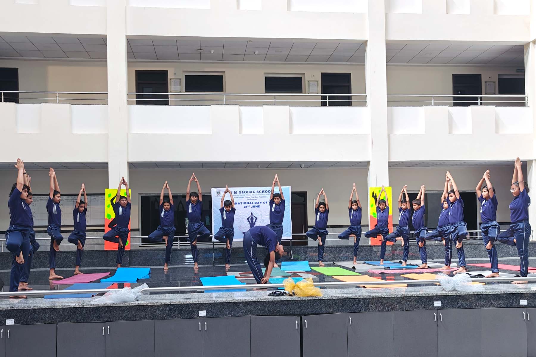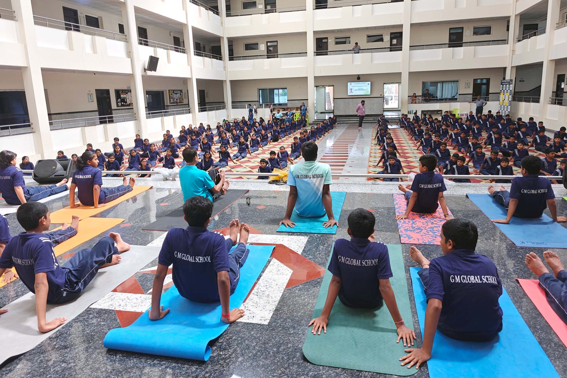 At G M Global School, we proudly celebrate the International Day of Yoga with enthusiasm and commitment to promoting holistic well-being. Yoga, a timeless practice rooted in India’s heritage, is an integral part of our school culture. Through engaging activities, expert-led sessions, and student participation, we aim to instill the values of mindfulness, physical fitness, and mental clarity in our students.
